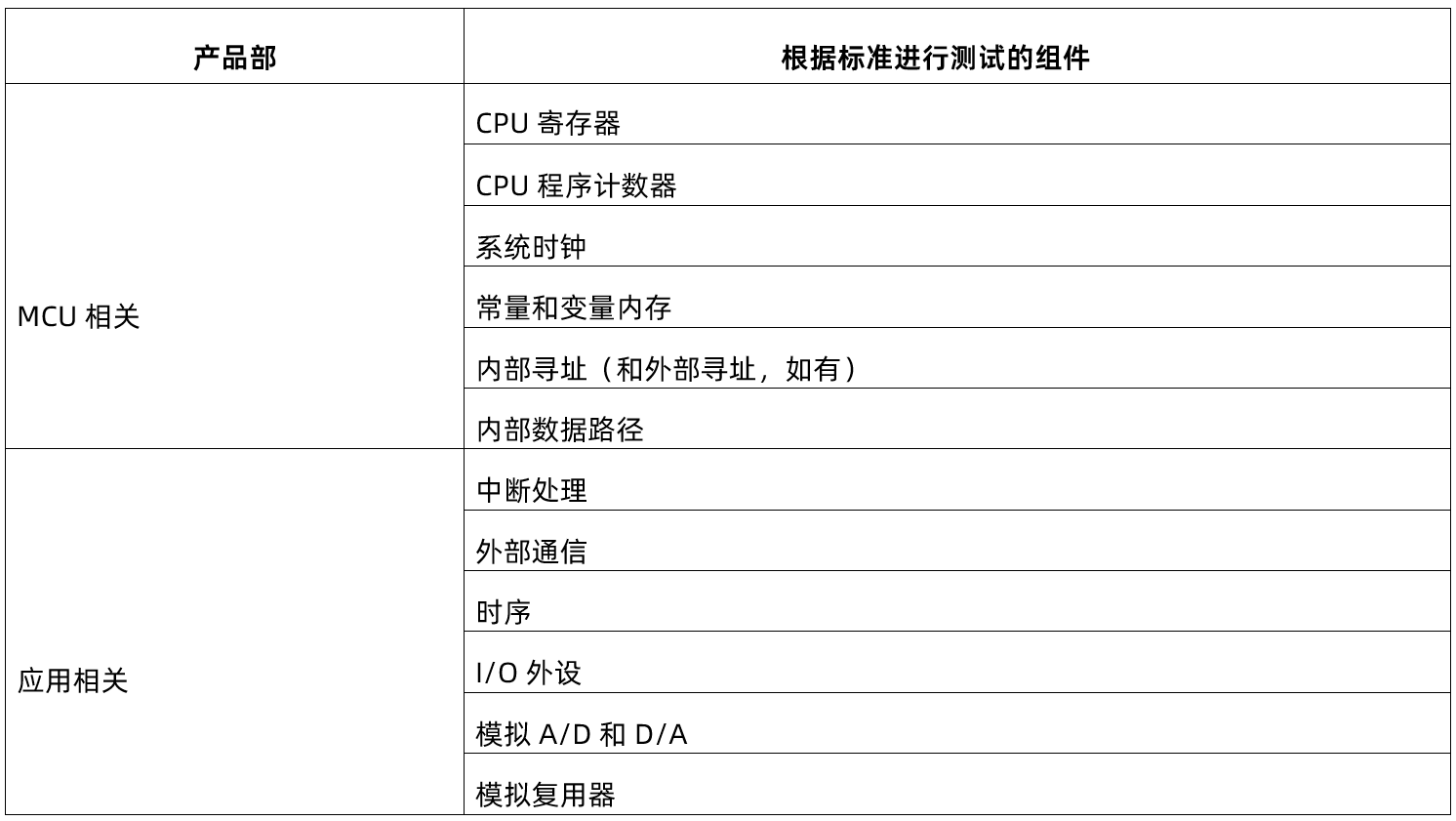 針對微控制器,必須在B類標(biāo)準(zhǔn)依從性下測試的MCU部件如下: