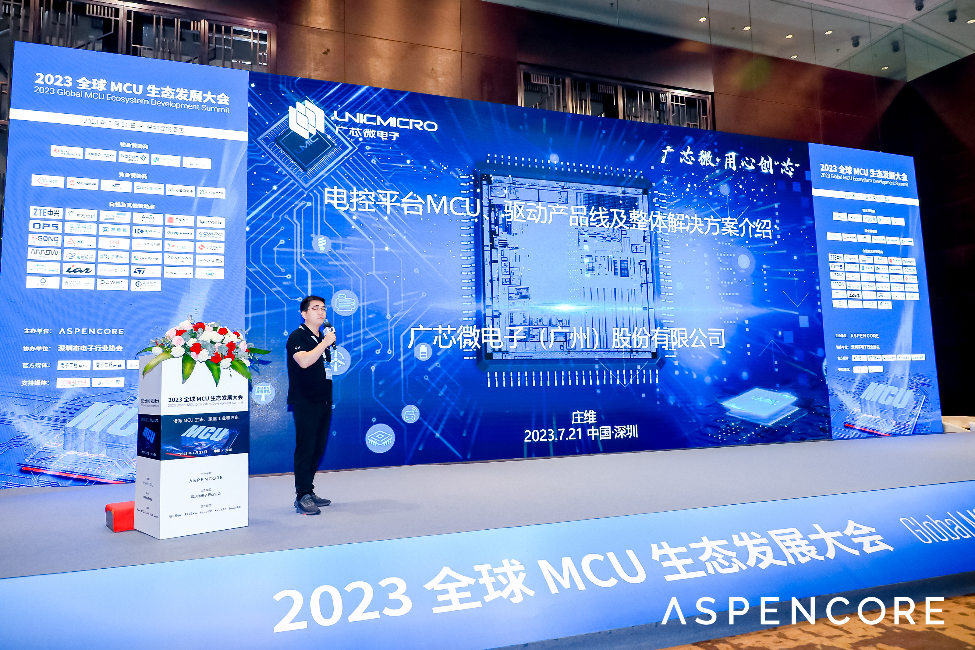7月21日,AspenCore主辦的2023全球MCU生態發展大會在深圳舉辦,大會邀請了國際和本土知名MCU廠商的技術和應用專家,為來自消費電子、家電、工業控制、通信網絡、新能源汽車和物聯網領域的OEM廠商和方案集成商代表介紹MCU領域的最新技術趨勢和應用解決方案,廣芯微應邀參加此次論壇并向與會的觀眾介紹廣芯微開發的“電控平臺MCU、驅動產品線及整體解決方案”。