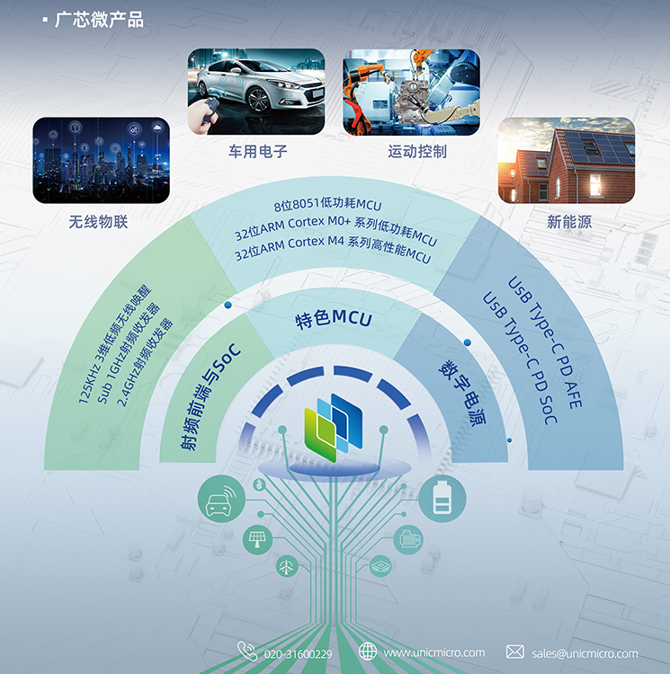 廣芯微電子(廣州)股份有限公司是一家致力于面向新能源、變頻電機(jī)控制及低功耗物聯(lián)網(wǎng)等領(lǐng)域?yàn)榭蛻籼峁﹦?chuàng)新芯片及其解決方案的集成電路設(shè)計(jì)企業(yè),其產(chǎn)品包括極具特色的8位/32位微控制器芯片、無(wú)線射頻收發(fā)器芯片、快充與數(shù)字電源管理芯片等。廣芯微獨(dú)有的低功耗芯片設(shè)計(jì)方法、高效率的變頻電控技術(shù)、大功率的PD快充協(xié)議以及多樣性無(wú)線連接技術(shù)整合而成創(chuàng)新與差異化的集成電路設(shè)計(jì),在健康醫(yī)療電子、消費(fèi)電子、智慧家庭、工業(yè)控制、傳感器與表計(jì)等領(lǐng)域已經(jīng)得到了廣泛的應(yīng)用。
