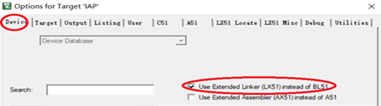 圖4  勾選Use Extended Linker(LX51) instead of BL51
