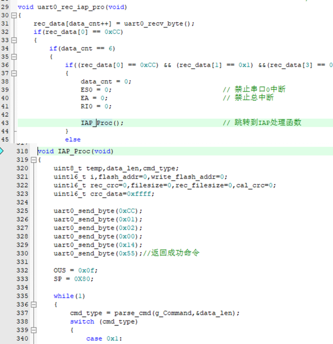 AP源碼主要功能是當UART收到上位機的請求更新幀時,執行IAP_Proc()函數,實現應用程序的更新下載。