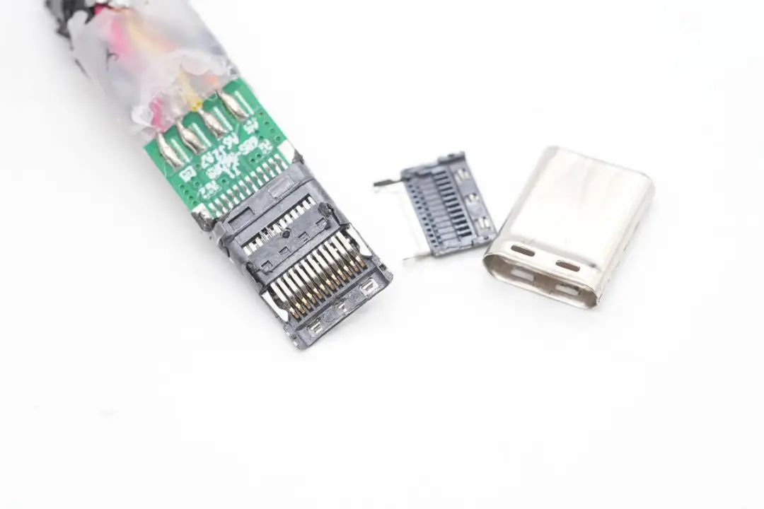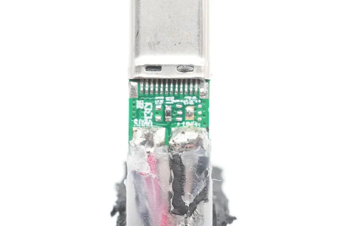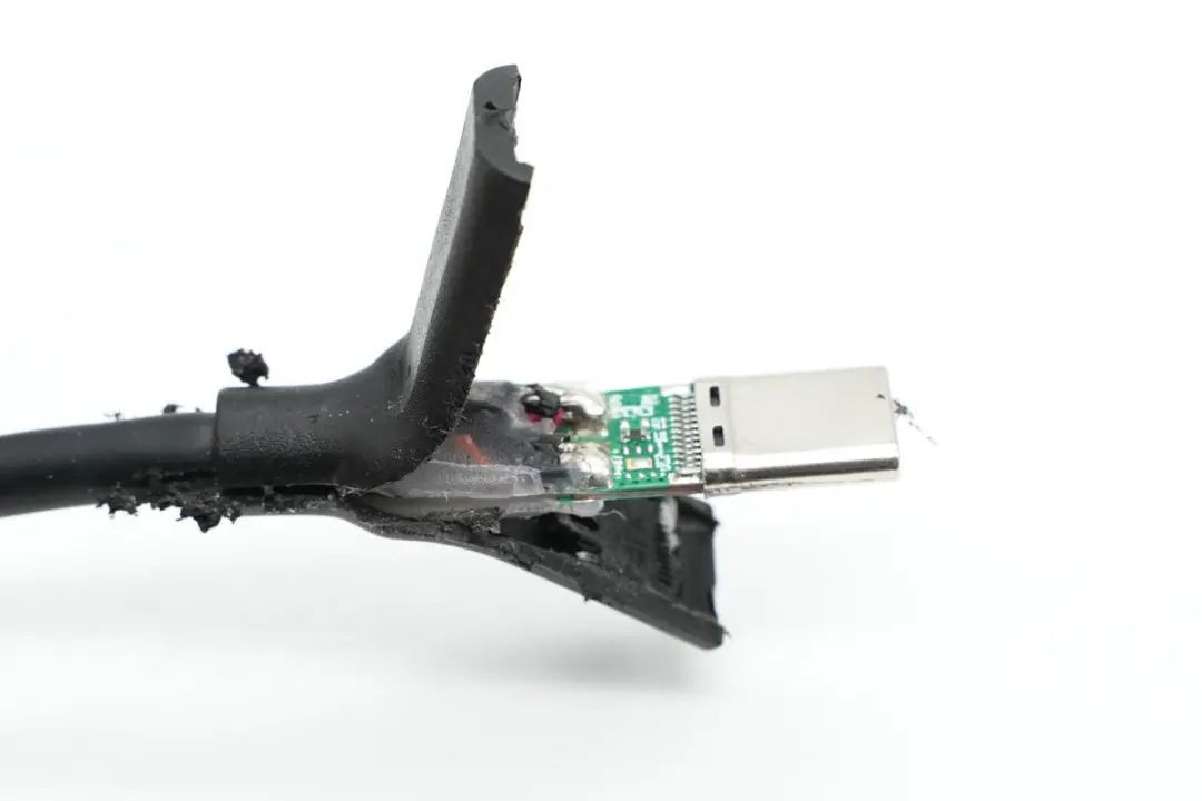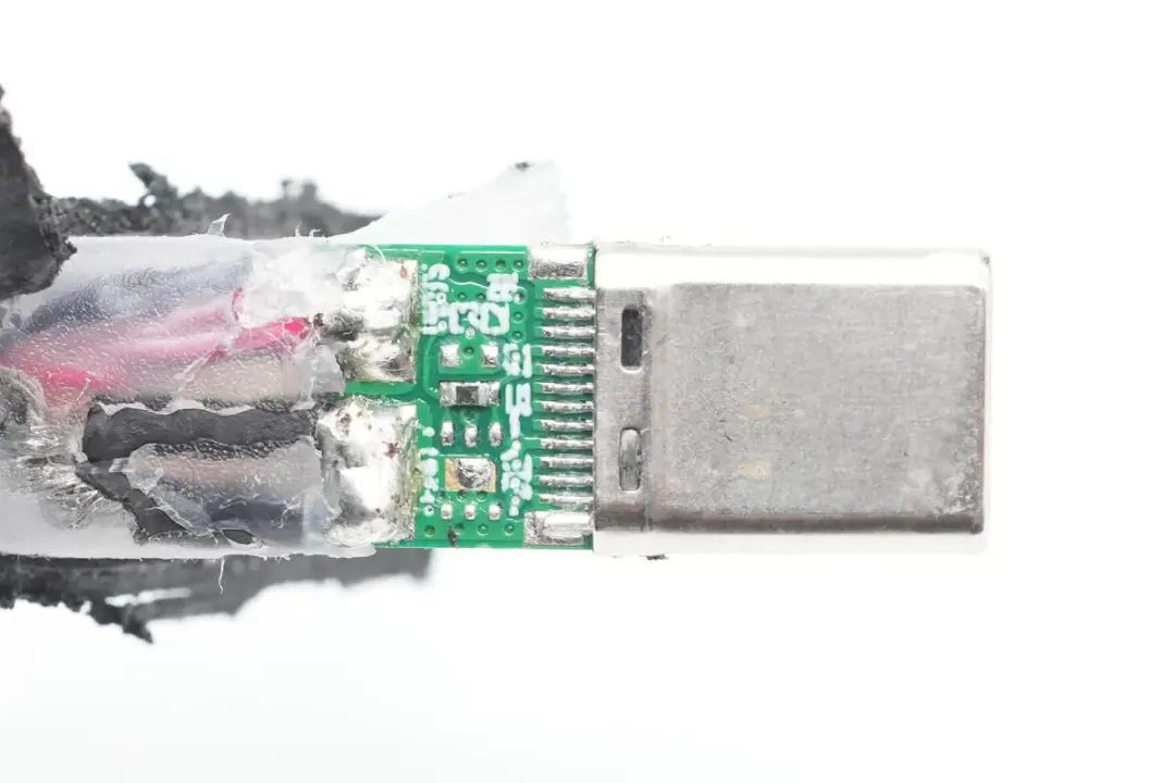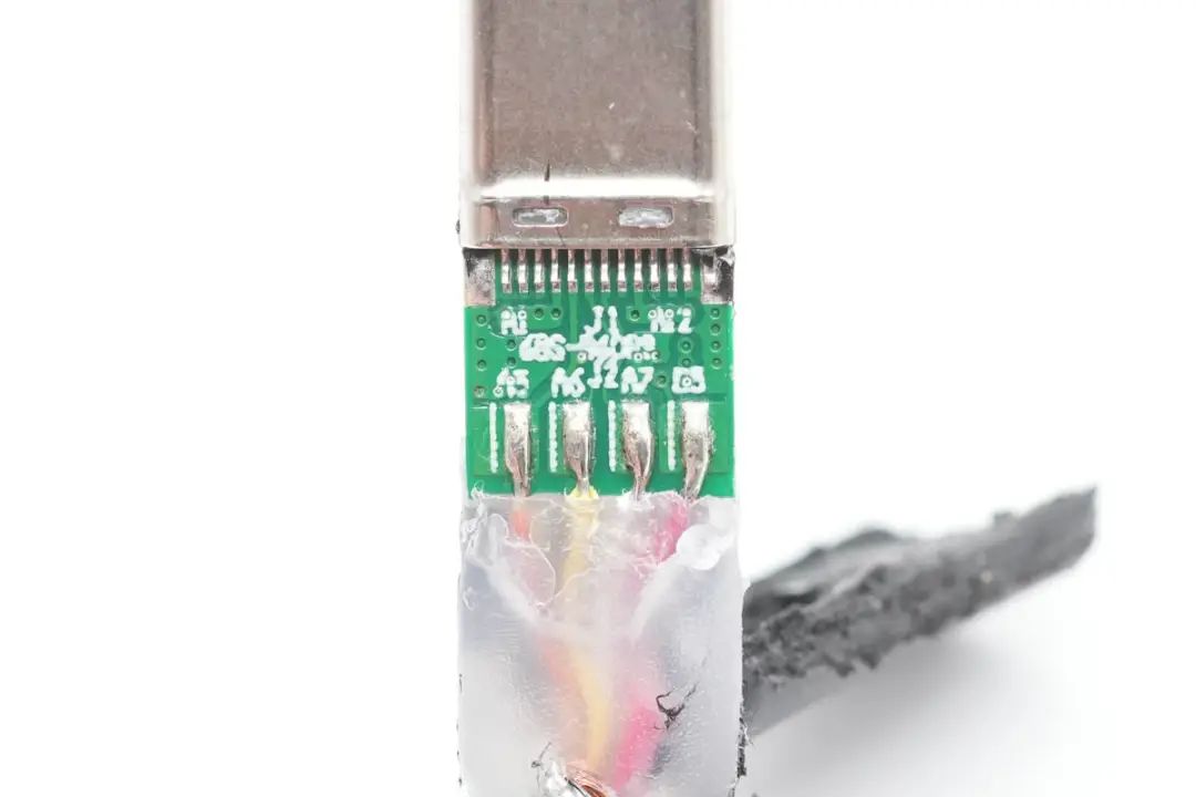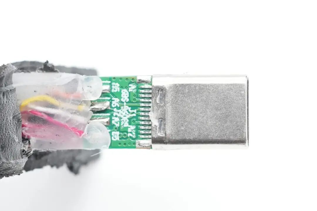 線纜另一頭也是同樣的焊接,焊接USB數(shù)據(jù)線和CC以及VCONN數(shù)據(jù)線。
