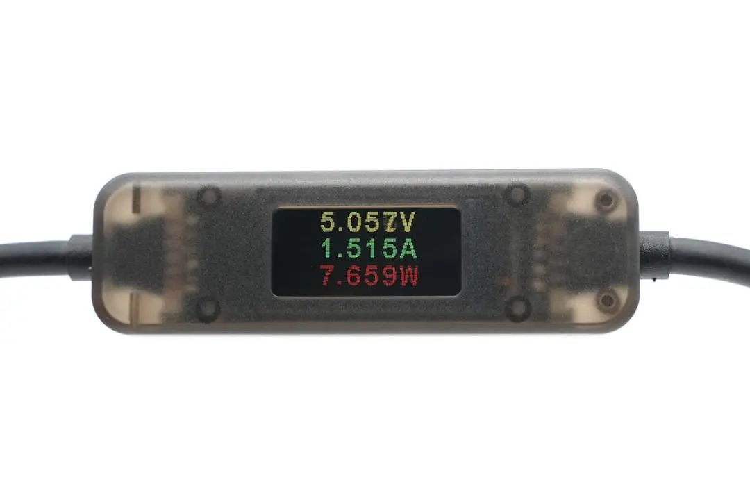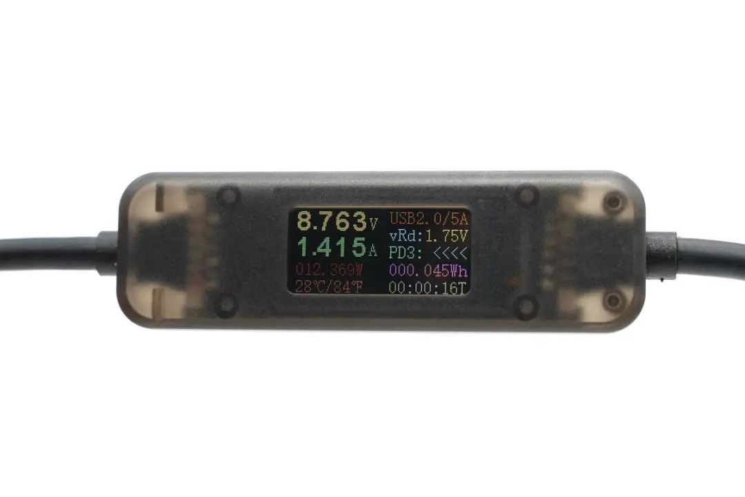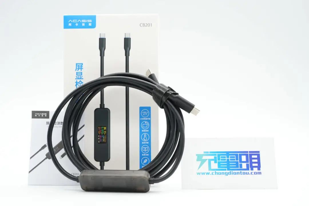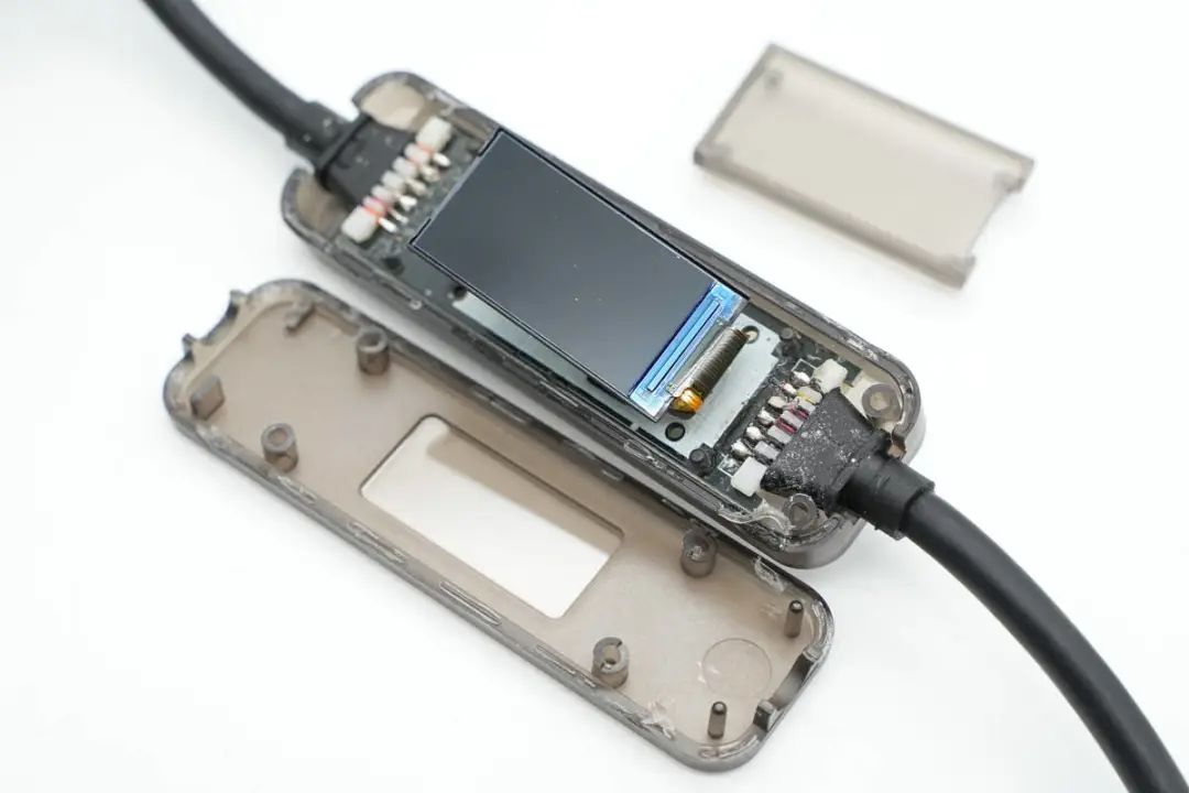 雙USB-C線纜作為大功率傳輸?shù)臉蛄海С滞ㄓ玫陌偻叽蠊β蕚鬏敚絹碓蕉嗟墓P記本電腦都采用USB-C接口進行充電。但是USB-C接口使用USB表檢測電壓電流,雖然可以了解充電狀態(tài),但并不適合普通大眾消費者。 為了滿足廣大消費者在充電過程中檢查電壓電流的需求,知名配件廠商阿卡西斯推出了一款100W的USB-C快充線,線纜自帶0.96英寸顯示屏幕,可以實時顯示當前充電器的輸出電壓和電流,方便消費者了解設(shè)備的充電情況。 充電頭網(wǎng)已經(jīng)拿到了阿卡西斯這款100W數(shù)顯快充線,下面就進行拆解,看看這款線纜是怎么設(shè)計的。
