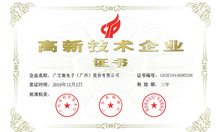 成立僅2年獲批成為廣東省2019年第一批高新技術企業,不僅標志著政府管理職能部門對廣芯微電子的科研能力、技術水準和未來發展潛力的充分肯定和高度認可,也激勵廣芯微電子繼續提高自身產品的核心競爭力,提升在集成電路領域內的可持續創新與發展能力。