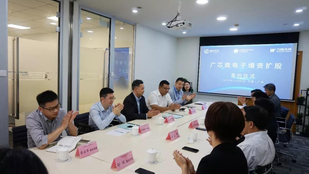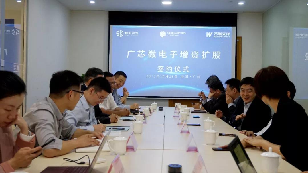 2019年10月28日(周一),廣芯微電子(廣州)股份有限公司增資擴股簽約儀式在位于廣州科學城商業廣場的廣芯微電子總部舉行。 廣州穗開股權投資有限公司總經理張放、萬聯天澤資本投資有限公司總經理張瑞雙、廣芯微電子(廣州)股份有限公司總經理兼董事長王銳參加儀式并簽署了增資擴股協議,本次融資規模為數千萬元人民幣。 開發區管委會巡視員孫學偉、開發區投資促進局副局長黃偉堅、智光電氣股份有限公司總裁陳謹、廣州市半導體協會會長及粵港澳大灣區半導體產業聯盟創會理事長陳衛、廣州開發區投資集團副總經理鄔斌參加了本次簽約儀式。